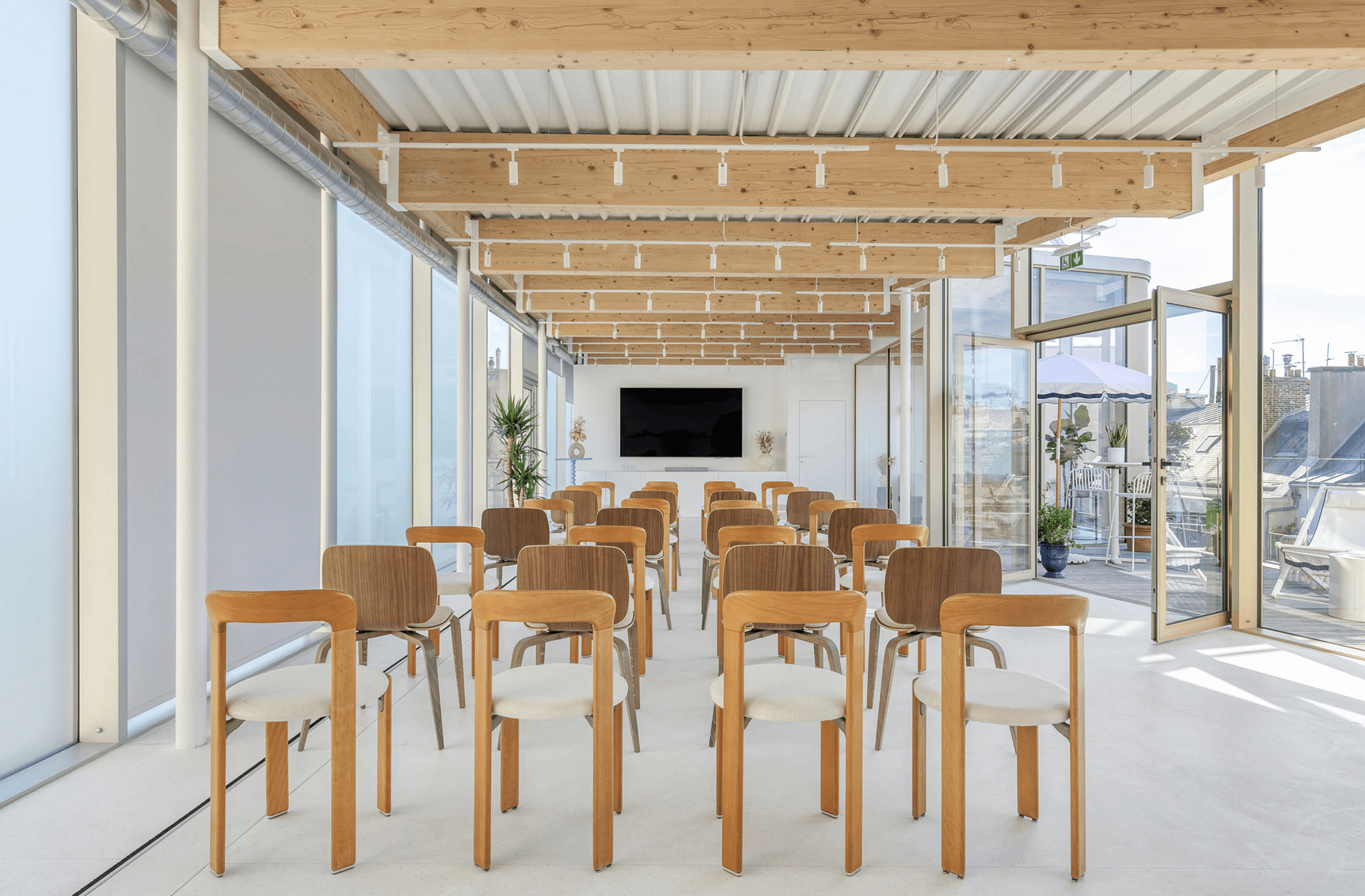 Un nouvel espace collection de 230m² au 6ème et dernier étage d’un immeuble dans le 8ème arrondissement de Paris, au cœur du quartier d’affaires de Saint-Lazare. Entièrement vitré, il domine le paysage des toits de Paris et dévoile une perspective imprenable sur le Sacré-Cœur depuis sa terrasse. Cette nouvelle adresse peut accueillir jusqu’à 150 personnes en cocktail pour des événements de marque d’exception.